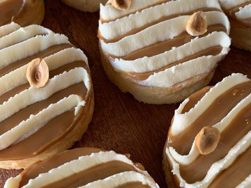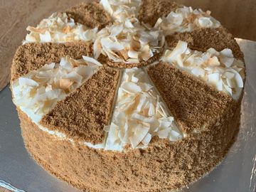 16 layers of toasty honey cake and dulce de leche cream filling. Bakery requires min. 1 week notice for orders.