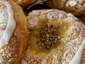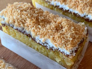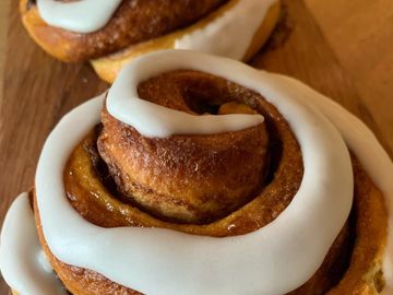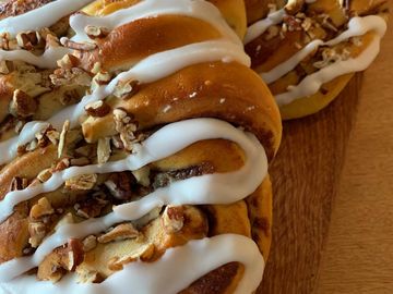 - with a cream cheese & lemon zest topping