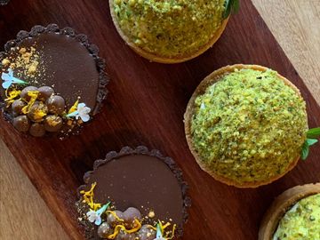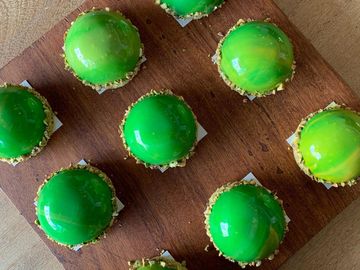 Lemon mousse on almond and pistacio base
