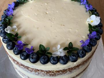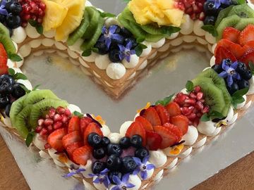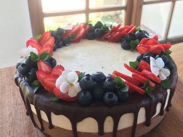 Frangipane base, whipped white chocolate ganache and fresh cream topped with fresh berries.