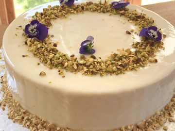 Frangipane base, white chocolate ganache