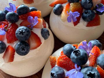 Meringue, fresh cream and fruit