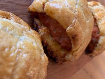 Pork sausage filling in a puff pastry